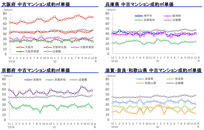 首都圏や近畿圏の中古住宅は、平均価格ベースではいまだ上昇傾向にありますが、首都圏では東京23区や、近畿圏では大阪市が価格上昇を牽引している構図です。他県や交通利便性が低いエリアでは、すでに価格調整局面に入りつつある地域も見られます。
